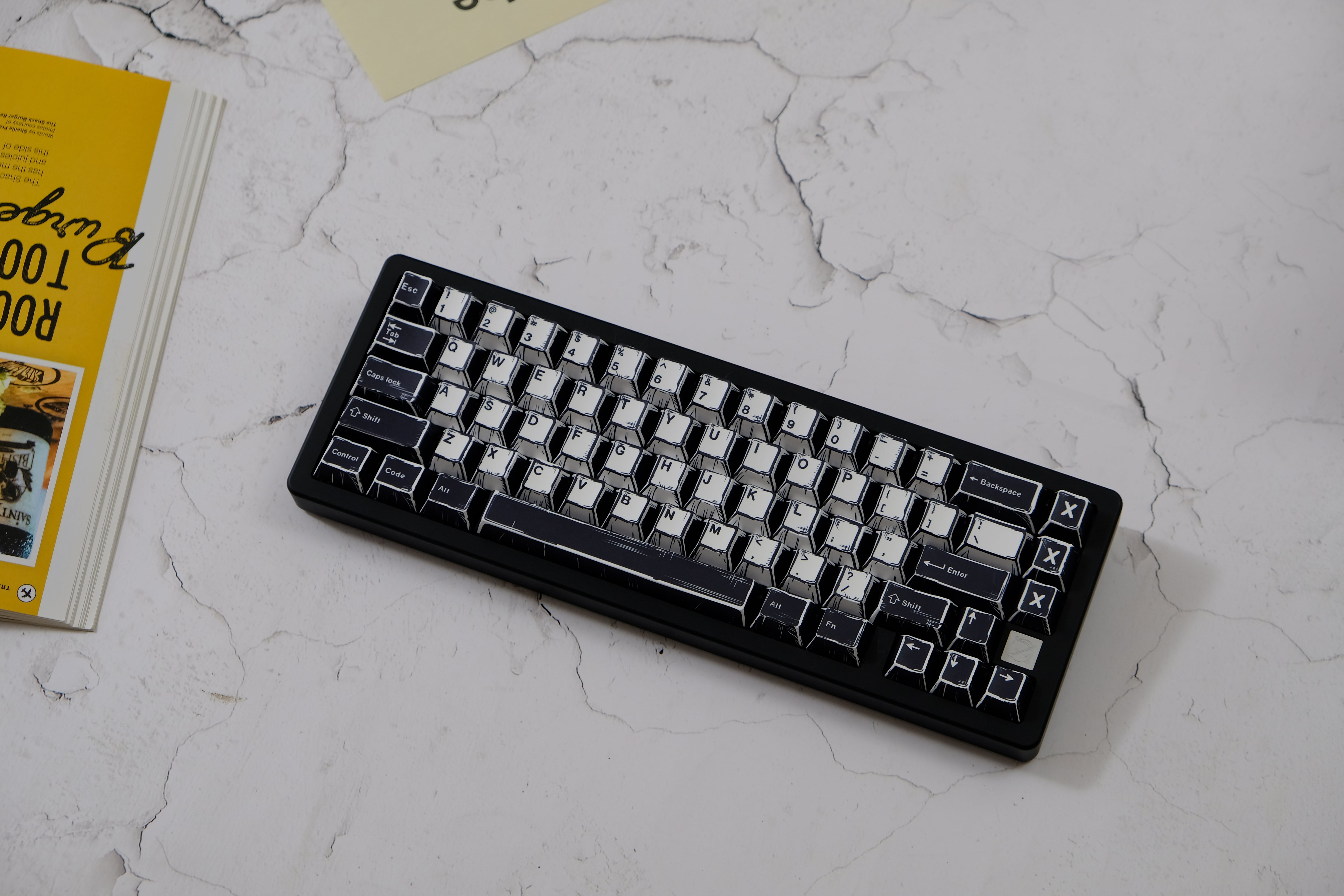The Comics Series is a vibrant and imaginative keycap collection with 150 keys, fitting layouts from 60% to 108% and supporting Alice keyboards. Each key is styled with a hand-drawn comic design, making your keyboard look like it came straight out of a comic strip.