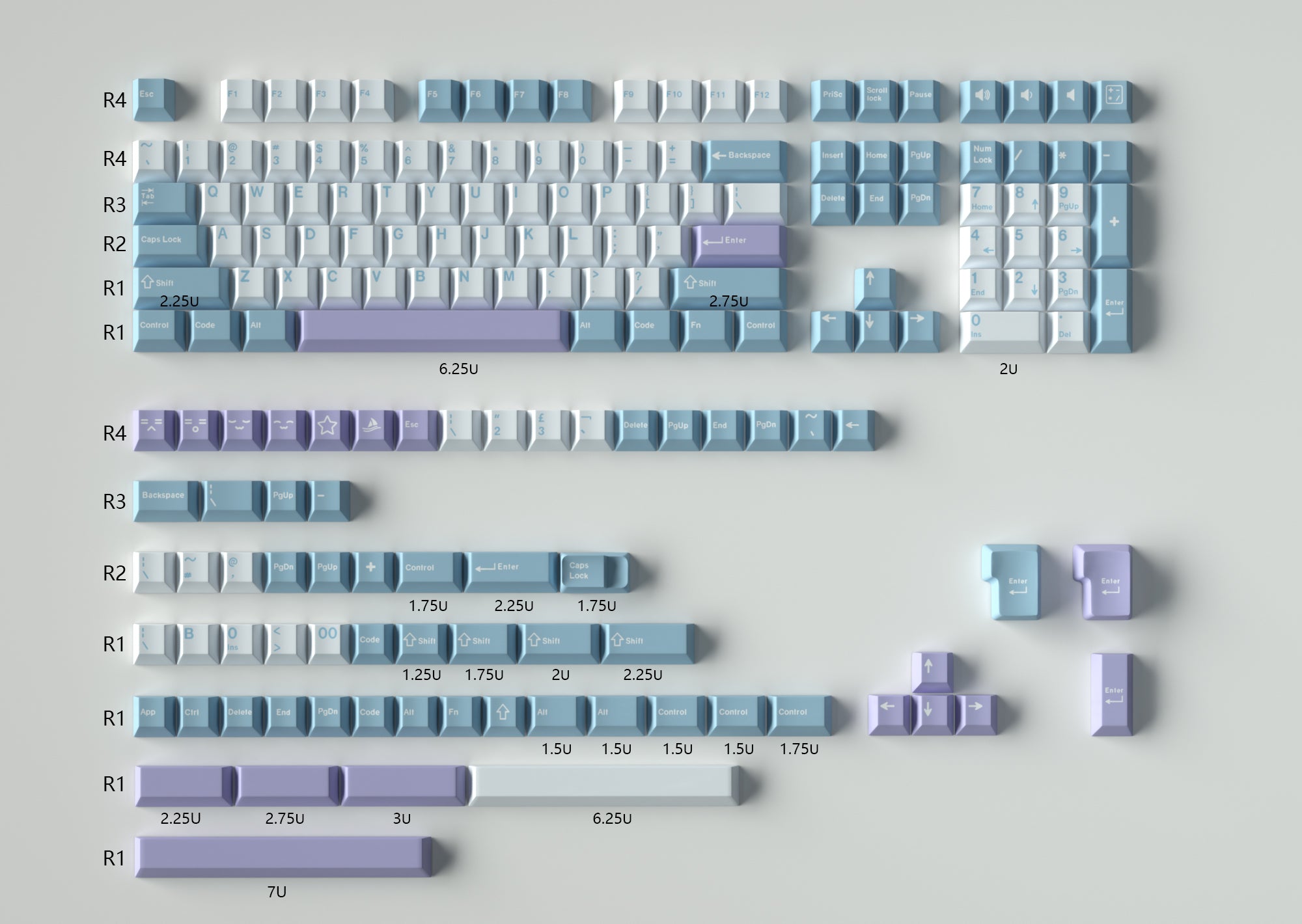 Suitable for most mechanical keyboards ranging from 60% to 108% layouts. Alice layouts depends on the speicifc design.